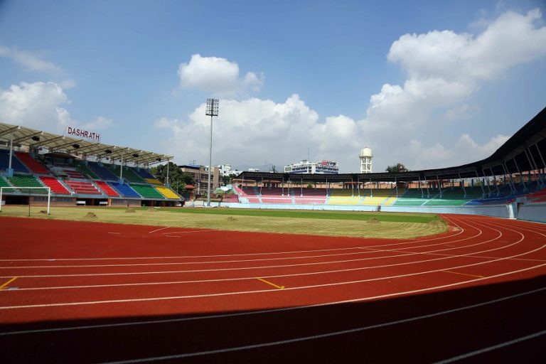 काठमाडौँ १३ असोज । काठमाडौँको त्रिपुरेश्वर अवस्थित दशरथ रङ्गशाला । कोराना भाइरस नियन्त्रण तथा रोकथामका लागि प्रशासनले लगाएको बन्दाबन्दी र निषेधाज्ञाले खेलकुदका कुनै पनि गतिविधि सञ्चालन नभए पनि रङ्गशालालाई चिटिक्क बनाएको छ ।