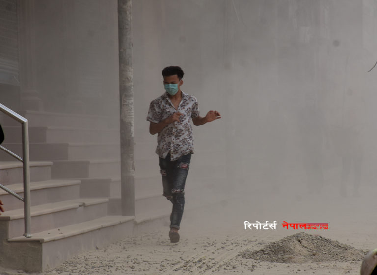 काठमाडौं, १९ असोज । काठमाडौंको पुतलीसडकमा सडक पीचको तयारी भैरहेको छ । पिचको लागि आवश्यक तयारी भैरहेको बेलामा अत्यधिक धुलो उडेको छ । सो क्रममा पुतलीसडक हुँदै पैदल यात्रा गर्नेहरुलाई भने केही क्षण सकस भएको छ ।