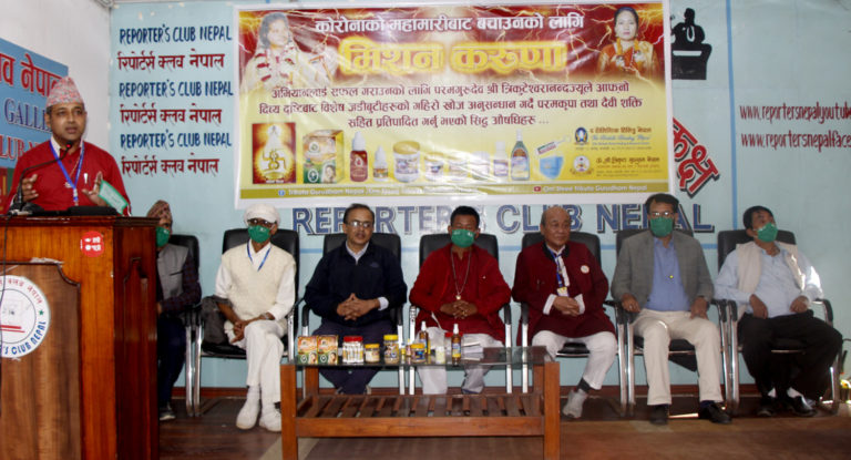 काठमाडौं, २१ असोज । ॐश्री त्रिकुटा गुरुधाम नेपालले कोरोना महामारीबाट जोगाउनको लागि ‘मिसन करुणा’ सार्वजनिक गरेको छ । त्यसअन्तर्गत प्रकृतिक सामग्रीहरु (मास्क, स्यानिटाईजर, स्प्रे, लोसन) र दिव्यकायाअमृत कवज पनि रहेको छ । बुधबार रिपोर्टर्स क्लब नेपालमा पत्रकार सम्मेलन गरेर आयोजक संस्थाले मिसन करुणा सार्वजनिक गरेको हो । कार्यक्रममा ॐश्री त्रिकुटा गुरुधाम नेपालका अध्यक्ष रेवतीरमण अधिकारी ‘विशुद्धानन्द’ ले मिसन करुणा र संस्थाको बारेमा प्रकाश पारेका थिए ।