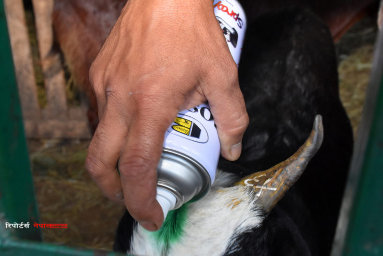 कामपा पशु सेवा विभागले मासुका लागि चौपाया बिक्रीवितरण हुने स्थानमा पुगी दशैँका लागि बिक्रीका लागि राखिएका चौपायाको स्वास्थ्य परीक्षण गर्दा ज्वरोे आए-नआएको, नाकबाट सिँगान बगे÷नबगेको, झोक्राएको-नझोक्राएको, पातलो दिसा भए-नभएको, चोटपटक भए-नभएको जस्ता सामान्य स्वास्थ्यावस्थाका विषयमा पशु चिकित्सकले परीक्षण गरेपछि सिङमा रङ लगाउन थालेको छ ।