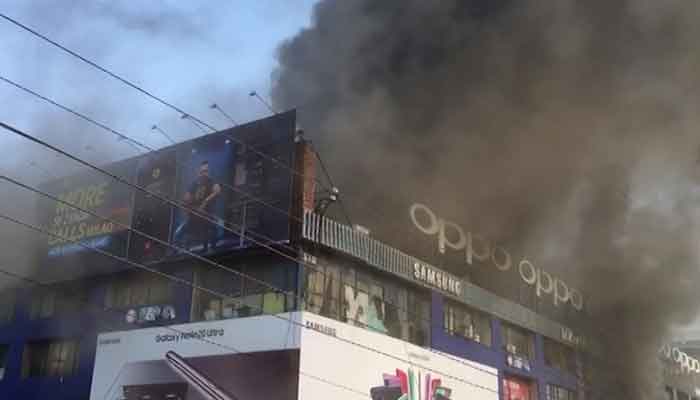 रिपोर्टका अनुसार शहरको गुलबर्ग मेन बुलेभार्ड क्षेत्रमा अवस्थित हाफिज सेन्टर नामको बहुमंजिला प्लाजाको दोस्रो तल्लामा आगलागी भएको हो ।