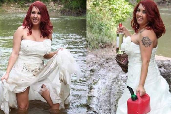 केटलिन मैक्की नामकी यी महिलाले आफ्नो चार वर्षे लामो वैवाहिक सम्बन्धलाई नदीमा विवाह गर्दा लगाएको गाउन लगाएर अन्त्य गरेकी छिन् । गाउनलाई १५ सय डलर मा विवाहमा खरिद गरिएको थियो । आफ्नो साथमा प्रेट्रोल लगेर जंगल तर्फ लागेकी हुन् । त्यहाँ पुगेर एक एक गरेर कपडा खोल्न सुरु गरेकी हुन् ।