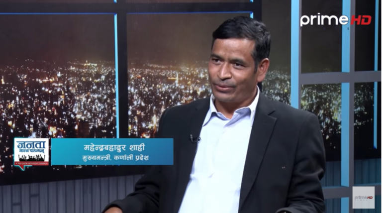 काठमाडौं, ४ कार्तिक । कर्णाली प्रदेशका मुख्यमन्त्री महेन्द्र बहादुर शाहीले आफूले जनताको हितको पक्षमा काम गरेको दाबी गरेका छन् । उनले कर्णाली प्रदेशमा नेकपाभित्रको विवाद समाधान हुने विश्वास पनि दिलाएका छन् । हिजो राति प्राइम टाईम्स टेलिभिजनबाट प्रसारण भएको जनता जान्न चाहन्छन् कार्यक्रममा पत्रकार ऋषि धमलासँग कुरा गर्दै मुख्यमन्त्री शाहीले आफूविरुद्धको अविश्वाको प्रस्ताव आवश्यक नै नभएको जिकिर गरे । उनले पार्टीको हित हुनेगरि नेतृत्वबाट हुने सबै निर्णय र निर्देशन आफ्नो लागि मान्य हुने पनि विश्वास दिलाए ।