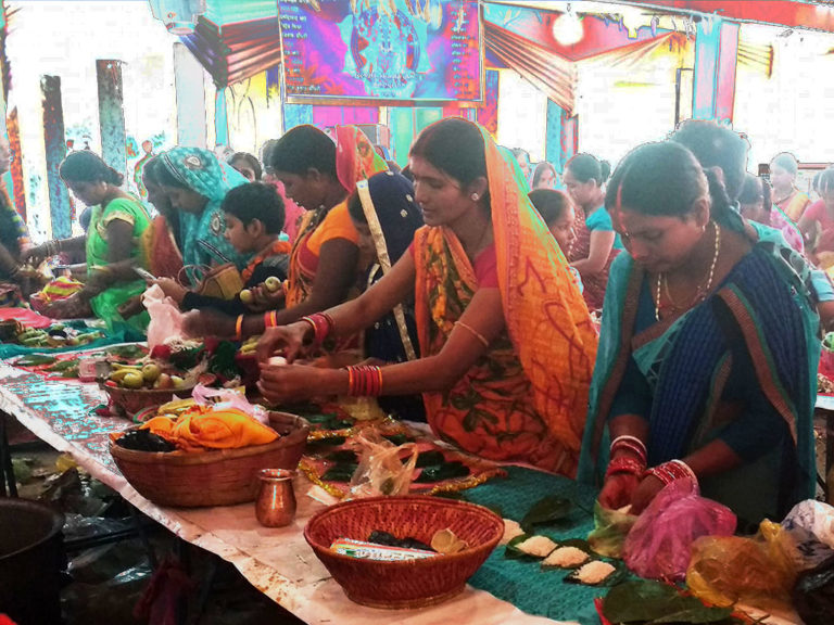 जनकपुरधाम, ८ कात्तिक: वडा दशैँको अष्टमीका दिन आज मिथिलाका नारीहरूले सौभाग्यवती एवं सन्तानको कामना गर्दै देवी दुर्गा भवानीको खोइँछ ( पोल्टा ) भर्ने विधि सम्पन्न गरेका छन् । नवरात्र सुरू भएदेखि नै देवी दुर्गाको उपासना गर्दै आएका विवाहित मैथिल महिलाले शक्तिपीठमा दुबो, धान, दुबो , बेसारको गिँड , सिन्दूर, सुपारी, पान र भेटीसहितको पोका देवी दुर्गाको पोल्टामा चढाउँदै पराम्परागत खोइँछ भर्ने विधि सम्पन्न गरेका छन् ।