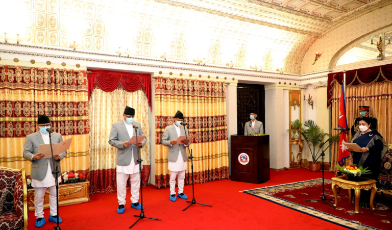काठमाडौंं, कार्तिक १७ । राष्ट्रपति विद्यादेवी भण्डारीसमक्ष नवनियुक्त तीन नेपाली राजदूतले शपथ लिएका छन् ।