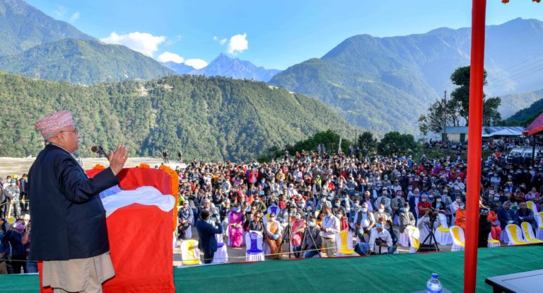 काठमाडौं, २७ कार्तिक । प्रधानमन्त्री केपी शर्मा ओलीले हिजो कार्तिक २६ गते संखुवासभाका विभिन्न स्थानका कार्यक्रमहरूमा जनसमुदायहरूलाई सम्बोधन गरेका छन् । तस्विर : प्रधानमन्त्री ओलीको सचिवालय