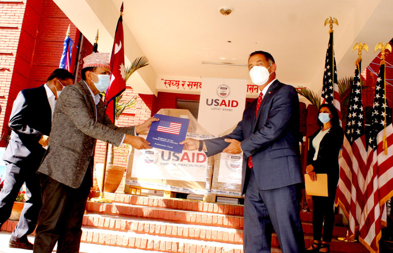 काठमाडौं, २८ कात्तिक । अमेरिकी सरकारले आफ्नो अन्तर्राष्ट्रिय विकास नियोग (युएसएआईडी) मार्फत स्वास्थ्य तथा जनसंख्या मन्त्रालयलाई एक सय थान भेन्टिलेटर हस्तान्तरण गरेको छ । शुक्रबार स्वास्थ्य तथा जनसंख्या मन्त्रालयमा भएको एक समारोहमा नेपालका लागि अमेरिकी राजदूत र्यान्डी बेरीले स्वास्थ्य तथा जनसंख्यामन्त्री भानुभक्त ढकाललाई एक सय थान भेन्टिलेटर हस्तान्तरण गर्नुभयो ।