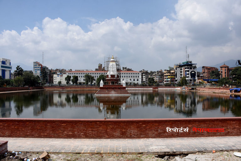 पोखरीमा १०८ तीर्थको जल हालिएको इतिहासकार बताउँछन् । प्रताप मल्लले निर्माण गर्दा पोखरीको चारैतिर चार मन्दिर स्थापना गर्न लगाएको पाइन्छ । सोमध्ये उत्तर–पश्चिम कुनामा शक्तिसहितको भैरवको मन्दिर, उत्तर–पूर्व कुनामा भैरवको मन्दिर, दक्षिण–पूर्व कुनामा देवीको मन्दिर र दक्षिण–पश्चिममा सोह्रहाते गणेश स्थापना गरेको देखिन्छ ।रासस