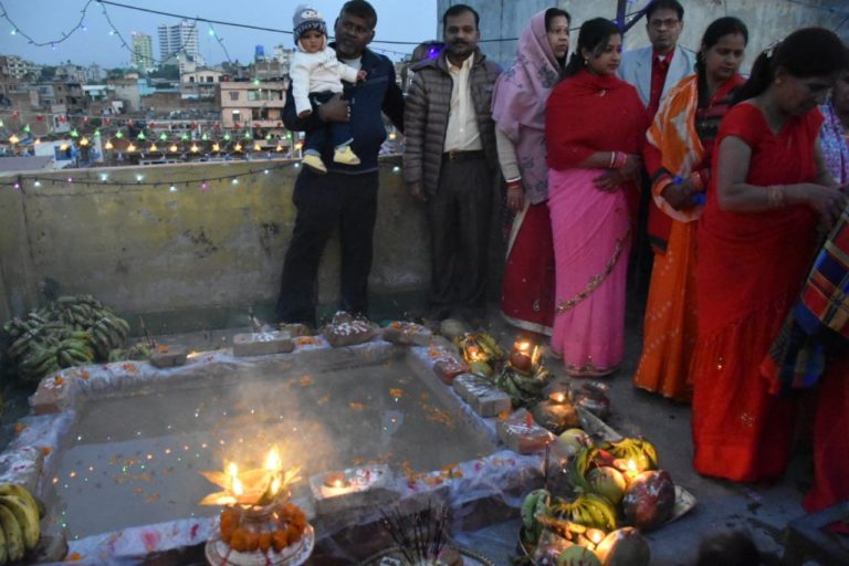काठमाडौं, ५ मंसिर । आस्थाको महापर्व छठ पर्वअन्तर्गत व्रतालुले आज यहाँ अस्ताउँदो सूर्यलाई अघ्र्य अर्पण गरी पूजाअर्चना गरेका छन् । व्रतालु अघ्र्य सामग्री लिइ सूर्यलाई पूजा अर्चना गरेका हुन् । अघ्र्य सामग्रीमा ठकुवा, कसार, केरा, उखु, मेवा मिष्ठान, गेडागुडी, कन्दमूल र विभिन्न वनस्पति राख्ने परम्परा छ । यस पर्वमा भुसवा र कृषिजन्य अन्नको पीठोबाट बनाइएका पकवानसँगै केराको घरी, माटोको हात्ती, सुप, कनसुपती, कलशसहितको घैँटो आदि सामग्रीको स्वच्छता र पवित्रतापूर्वक व्यवस्था गरिन्छ र साँझतिर अस्ताउने सूर्यको नमन गर्दे अघ्र्य दिइन्छ ।