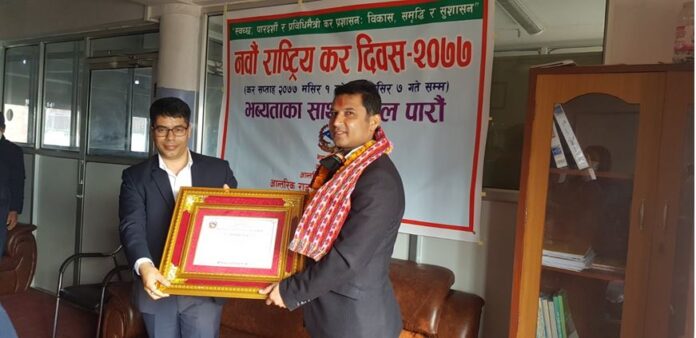 अर्थ मन्त्रालयका राजस्व सचिव रामशरण पुडासैनीको अध्यक्षतामा आइतबार आन्तरिक राजस्व विभागमा भएको नवौं कर दिवस समापन कार्यक्रममा धेरै कर तिर्नेको नाम घोषणा गरिएको हो । सरकारले हरेक वर्ष १ मंसिरमा राष्ट्रिय कर दिवसका रूपमा मनाउँदै आएको छ ।