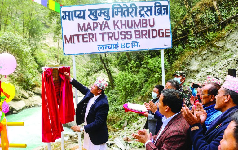 संसारकै अग्लो छानो सगरमाथा छुवाउने पदमार्गका रुपमा लिइएको माप्य–खुम्बु मितेरी मोटरेबल पुल निकै तामझामसहित औपचारिकरुपमा उद्घाटन गरिएको हो ।