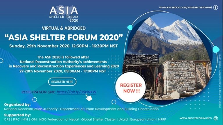 काठमाडौँ, १४ मङ्सिर: राष्ट्रिय पुनःनिर्माण प्राधिकरण र शहरी विकास मन्त्रालयअन्तर्गतको शहरी विकास तथा भवन निर्माण विभागको नेतृत्वमा एशिया सेल्टर फोरमको चौथो कार्यशाला गोष्ठी काठमाडौँमा हुँदैछ । एशिया प्रशान्त क्षेत्रमा आएका विपद्पछि आवास प्रतिकार्यमा हासिल गरिएका बृहत् अनुभव आदानप्रदान गर्ने मूल अभिप्रायले गोष्ठीको आयोजना गर्न लागिएको हो ।