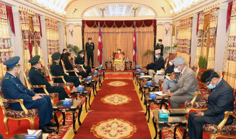 काठमाडौं, १४ मंसिर । राष्ट्रपति विद्यादेवी भण्डारीले नेपालको सार्वभौमसत्ता, भौगोलिक अखण्डता र स्वतन्त्रताको सम्मान गर्दै आएकामा छिमेकी मित्र राष्ट्र चीनको सराहना गरेकी छिन् । चीनका राज्य परिषद् सदस्य तथा रक्षामन्त्री वेइ फेङ्हेसँग राष्ट्रपति कार्यालय शीतल निवासमा भएको भेटमा राष्ट्रपतिले नेपाल र चीनबीच शदियौँदेखि रहिआएको प्रगाढ सम्बन्ध थप सुदृढ गर्न रक्षामन्त्रीको भ्रमण कोसेढुङ्गा हुने विश्वास व्यक्त गरेकी हुन् ।