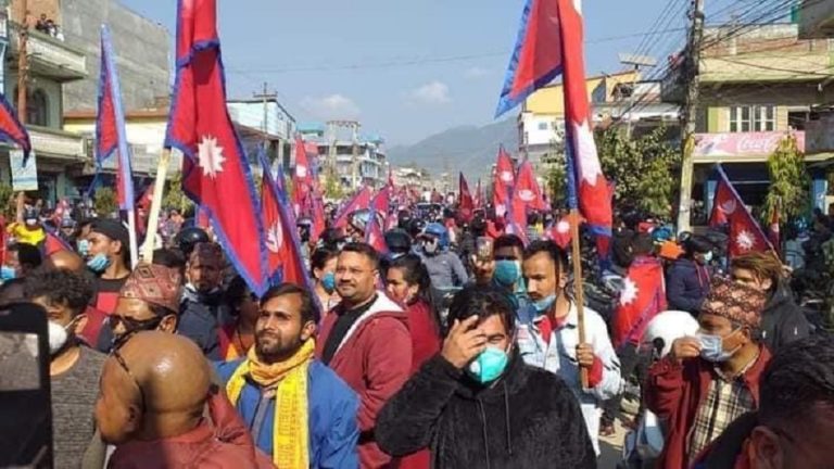 राजावादीहरुले बाँजागाँजासहित शक्ति प्रदर्शन गरेका थिए । सरकारले कोरोना भाइरसको महामारीमा जुलुस सभा तथा प्रदर्शन नगर्न भनिरहँदा राजावादीले प्रदर्शन गरेका हुन् ।
