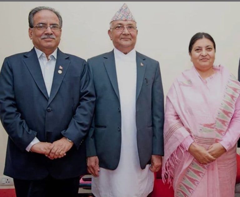 काठमाडौं, मंसिर १९ । राष्ट्रपति विद्यादेवी भण्डारीसँग नेपाल कम्युनिष्ट पार्टी (नेकपा) का अध्यक्षद्वय केपी शर्मा ओली तथा पुष्पकमल दाहाल प्रचण्डले छुट्टाछुट्टै भेटघाट गरेका छन् । राष्ट्रपति निवास शीतल निवासमा भएको भेटलाई नियमित भेट भनिएको छ ।