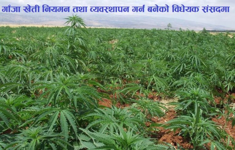 मंसिर १९, काठमाण्डौ । नेपालमा गाँजा प्रतिबन्ध छ । यसको खेति, किनबेच र प्रयोगलाई कानुनले अवैध भनेको छ । उक्त कानुन संशोधन गरेर गाँजा खेतिलाई बैधानिकता दिनुपर्ने माग उठिरहेको छ । प्रतिनिधिसभा र बागमती प्रदेशमा गाँजा खेति खुला गर्ने व्यवस्थासहितको विधेयक दर्ता भएको ९ महिना भइसकेको छ । उता संयुक्त राष्ट्रसंघले पनि गाँजालाई हानिकारक लागुऔषधको सूचीबाट हटाएको छ ।