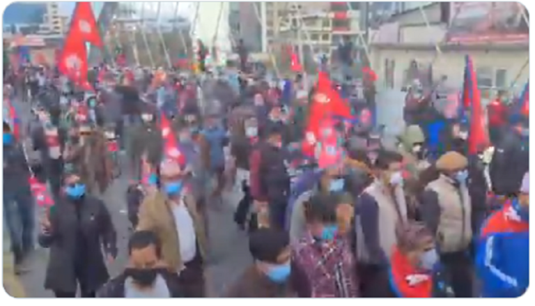 काठमाडौं, २० मंसिर । राजधानीमा राजावादीले आज शक्ति प्रदर्शन गरेका छन् । ठुलो संख्यामा राजावादीहरु राष्ट्रिय झण्डासहित सडकमा उत्रिएका थिए । उनीहरुले राजसंस्थाको पुर्नस्थापनाको माग समेत गरेका छन् ।