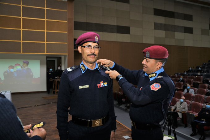 काठमाडौं, २६ मंसिर । नेपाल प्रहरीको प्रहरी अतिरिक्त महानीरिक्षक एआइजीमा बढुवा निर्णय भएको भोलिपल्टै विश्वराज पोखरेललाई दज्र्यान्ही चिन्ह प्रदान गरिएको छ । आज प्रहरी प्रधान कार्यालयमा आइजीपी शैलेश थापा क्षेत्रीले पोखरेललाई दज्र्यान्ही चिन्ह प्रदान गरेका हुन् ।