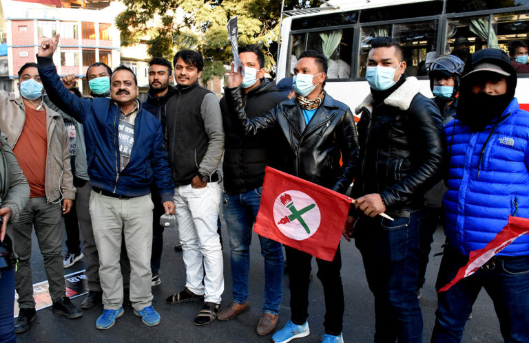 नेविसंघले विभिन्न जिल्लामा सिठी जुलुस निकालेर सरकारका गलत गतिविधि रोक्न जनतालाई जागरण गराएको नेविसंघ नेताहरुको भनाइ छ । देशभर अपराह्न चार बजे एकसाथ सिठी जुलुस निकालेर सोमबारको कार्यक्रमको प्रचारप्रसार गर्दै जनतालाई सडक प्रदर्शनका लागि आह्वान गरिएको नेताहरुले जानकारी दिएका छन् । तस्विर : मुकुन्द कालिकोटे, रिपोर्टर्स नेपाल डटकम