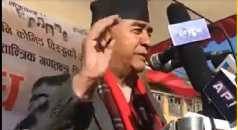 ‘ओलीकै कारण राजा आऊ देश बचाऊ भन्ने नारा सडकमा लाग्न थालेको छ,’ काँग्रेसको देशव्यापी प्रदर्शनका क्रममा हेटौंडामा आयोजित सभालाई सम्बोधन गर्दै देउवाले भने, ‘ओलीले राजतन्त्र ल्याए थाहाछेन ।’ प्रधानमन्त्री ओलीमाथि सर्वसत्तावादी बनेको आरोप लगाउँदै देउवाले लोकतन्त्रवादी गम्भीर हुनुपर्ने बेला आएको बताए ।