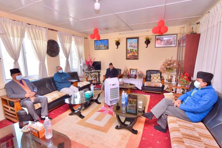 काठमाडौं, पुस ५ । सत्तारूढ नेपाल कम्युनिस्ट पार्टी (नेकपा)भित्र देखिएको विवाद समाधानका लागि शनिबार शीर्ष नेताहरूका बीचमा भेटघाट तथा छलफलले तीव्रता पाएको छ । छलफललाई तीव्रता दिँदै नेताहरूले सहमतिको प्रयास जारी राखेका छन् ।