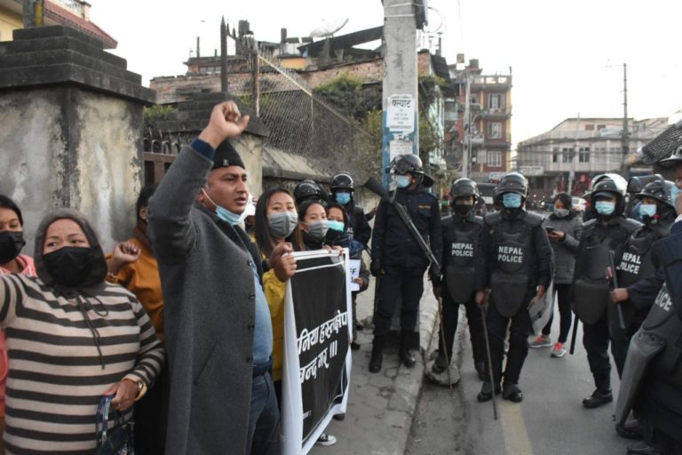 काठमाडौं, १२ पौष । नेपालको राजनीतिमा चीनले हस्तक्षेप गरेको भन्दै चिनियाँ राजदूतावास अगाडि प्रदर्शन भएको छ । प्लेकार्डसहित चिनियाँ दूतावास अगाडि पुगेकाहरुले धर्ना दिदै प्रदर्शन गरेका हुन् ।
