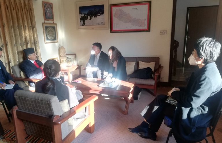 काठमाडौं, १३ पुस । नेपाल भ्रमणमा रहेको चिनियाँ कम्युनिष्ट पार्टीको प्रतिनिधि मण्डलले नेकपा वरिष्ठ नेता झलनाथ खनालसँग भेटवार्ता गरेको छ । खनाल निवासमा भएको भेटवार्तामा दुई पार्टी र दुई देशबीचको सम्वन्धलाई अझ राम्रो बनाउने, सुदृढ गर्ने बारेमा छलफल भएको खनालको सचिवालयले जनाएको छ।