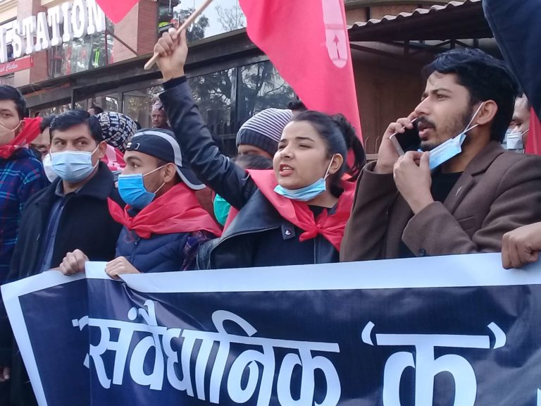 प्रतिनिधिसभालाई बिघटनको अवस्थामा लाने प्रधानमन्त्री केपी शर्मा ओलीको कदमको विरोधमा नेकपाको प्रचण्ड समूहले आन्दोलन शुरु गरेको हो । ओलीको कदमले नेकपा विभाजन भएको छ ।-फाइल तस्बिर