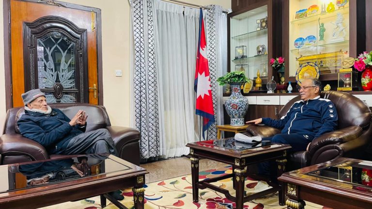 काठमाडौं, १६ पौष । नेपाल कम्युनिस्ट पार्टीका अध्यक्ष पुष्पकमल दाहाल प्रचण्डलाई भेट्न पाका कम्युनिस्ट नेता मोहनविक्रम सिंह खुमलटारस्थित निवासमै पुगे । नेकपा मसालका महामन्त्री समेत रहेका सिंहले प्रचण्डसँग पछिल्लो राजनीतिक घटनाक्रमबारे लामो कुराकानी गरे ।