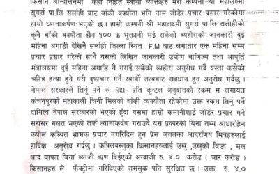 महालक्ष्मी सुगर्स प्रा.ली.ले भन्यो : ‘उखुको किसानको बाँकी बक्यौता छैन, १०० प्रतिशत भुक्तानी भैसकेको छ’ (विज्ञप्तीसहित)