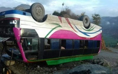 दोलखा जाँदै गरेको बस मन्थलीमा दुर्घटना, २८जना घाइते
