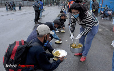 लकडाउन डायरी : गोरखनाथ आश्रमद्धारा मजदुरलाई खाना खुवाउँदै (फोटोफिचर)