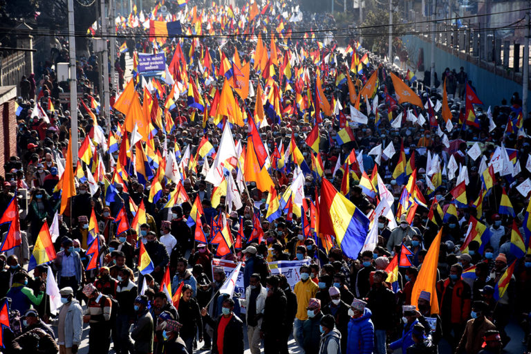 काठमाडौं, १७ पौष । हिन्दुराष्ट्र र राजसंस्थाको नारा बोकेर आन्दोलनरत राष्ट्रिय प्रजातन्त्र पार्टीले राजधानीमा शक्ति प्रदर्शन गरेको छ । हजारौंको संख्यामा राष्ट्रिय झण्डा र राप्रपाको झण्डा बोकेकाहरु राजधानीको सडकमा देखिएका थिए ।