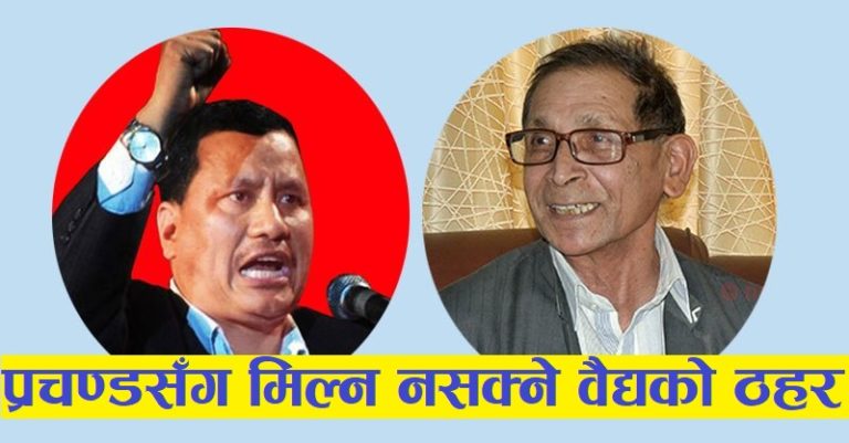 १० वर्षको जनयुद्धकालमा सँगै रहेका पुष्पकमल दाहालसँग भने एकताको सम्भावना नरहेको वैद्य बताउँछन् । दाहालले संसदीय व्यवस्था स्वीकार गरेर कम्युनिष्ट चरित्रबाट भागिसेककाले अब एकता नहुने महासचिव वैद्य बताउँछन् ।