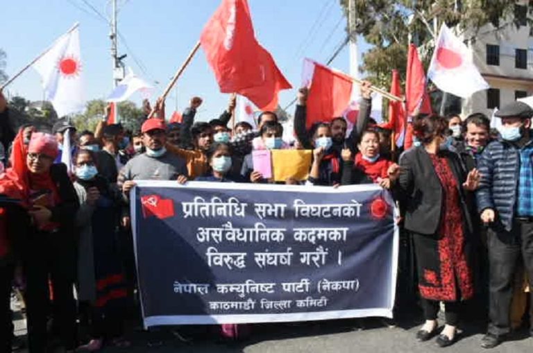 काठमाडौं, २४ पौष । प्रधानमन्त्री केपी शर्मा ओलीले प्रतिनिधिसभा बिघटन गराउने कदम चालेको विरोधमा मुख्य राजनीतिक दलहरु आन्दोलनमा छन् । विशेषगरी नेपाल कम्युनिस्ट पार्टीको प्रचण्ड माधव नेपाल समूह सडक संघर्षमा छ ।