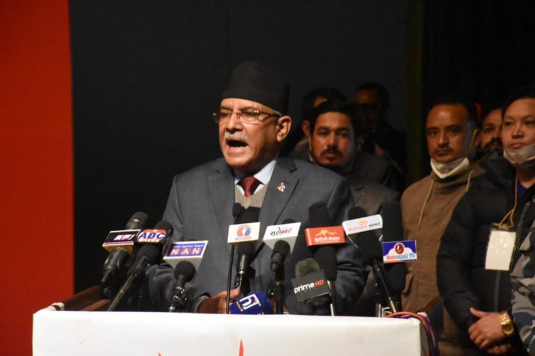 काठमाडौं, २९ पौष । नेपाल कम्युनिस्ट पार्टीका अध्यक्ष पुष्पकमल दाहाल प्रचण्डले प्रधानमन्त्री केपी शर्मा ओलीले राजनीतिक प्रहसन देखाइरहेको टिप्पणी गरेका छन् । आज नेकपाको आफ्नो समूहको काठमाडौं जिल्ला कमिटिद्वारा आयोजित कार्यकर्ता भेलालाई सम्बोधन गर्दै उनले ओलीलाई विक्षिप्त र बौलाहट मानसिकताको व्यक्ति भएको आरोप समेत लगाए ।