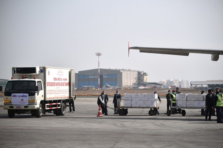 काठमाडौँ, ८ माघ: कोरोना भाइरसविरुद्धको १० लाख मात्राको खोप नेपाल आइपुगेको छ । नेपाल सरकारलाई भारत सरकारले अनुदानमा उपलब्ध गराएको ती खोप आज अपराह्न एअर इन्डियाबाट ल्याइएको हो ।