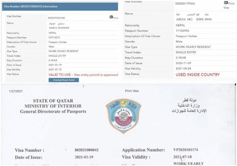 कतार प्रवेश भइसकेको व्यक्तिको भिसा स्ट्याटसमा ‘इनसाइड कन्ट्री’ देखिन्छ, कतार प्रवेश भइसकेको व्यक्तिको भिसा स्ट्याटसमा ‘इनसाइड कन्ट्री’ देखिन्छ, त्यसैले कुँबर कतार इन्ट्री नभएको देखिन्छ