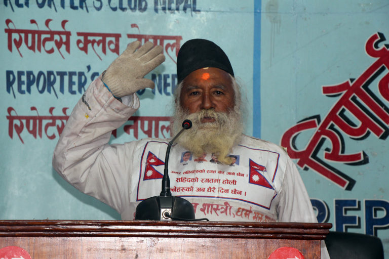 आज रिपोर्टर्स क्लब नेपालमा पत्रकार सम्मेलनको आयोजना गर्दै उनले भने–‘यो देशमा अस्ति ०६२ सालदेखि २०७७ सालसम्म ज्ञानेन्द्र शाहले मात्रै ३२ खर्ब रुपैयाँ करप्सन गर्याछ । कसरी भन्नुहोला भने ७० प्रतिशत ज्ञानेन्द्रलाई, २५ प्रतिशत खड्ग ओली, प्रचण्डलाई, शेरबहादुरलाई, विद्या भण्डारीलाई र अर्को ५ प्रतिशत सबै पार्टीका कार्यकर्ताहरुलाई, त्यसरी भाग लगाएर ज्ञानेन्द्र शाहले सत्ता छाडेका हुन् । त्यसकारण म टुलुटुलु हेरे बस्दिन् भनेको कारण त्यही रहेछ ।’ ‘अमर शहीदहरुको रगत खेर जानेछैन्’, ‘सहिदको रगतमा होली खेल्नेहरुको अब धेरै दिन छैन्’ भन्ने लेखिएको कुर्ता लगाएका थिए ।