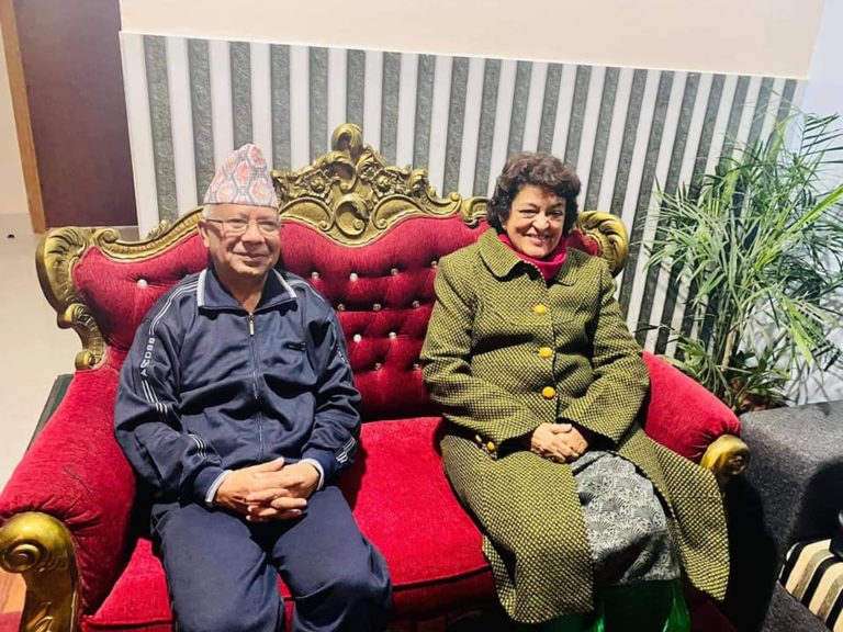 काठमाडौं, १६ माघ । विरानगरमा नेपाल कम्युनिष्ट पार्टी (नेकपा) दाहाल–नेपाल पक्षका अध्यक्ष माधव कुमार नेपालसँग कांग्रेस नेतृ सुजाता कोइरालाको आकस्मिक भेट । उक्त भेटबारे तस्विर सेयर गर्दै नेतृ कोइरालाले आकस्मिक भेटको संज्ञा दिएकी छिन् । तस्विर : नेतृ कोइरालाको फेशबुकबाट
