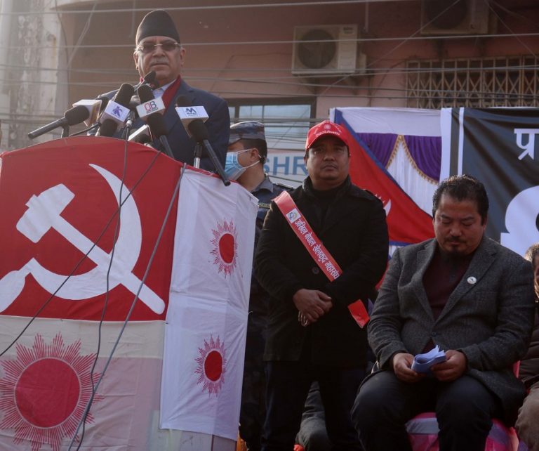 विराटनगर, १६ माघ: नेपाल कम्युनिस्ट पार्टी (नेकपा) प्रचण्ड–नेपाल समूहका अध्यक्ष पुष्पकमल दाहाल‘प्रचण्ड’ले देशमा अहिले गम्भीर राजनीतिक सङ्कट देखापरेकोले यसको निकासका लागि जनतामाझ आएको बताएका छन् । सो पार्टीद्वारा आज आयोजित ‘प्रतिनिधिसभा विघटनविरुद्ध विरोधसभा’मा उनले ‘प्रधानमन्त्रीले संसद् विघटन मात्र गरेको होइन लोकतन्त्र माथि नै हमला गरेका छन्’ भने ।