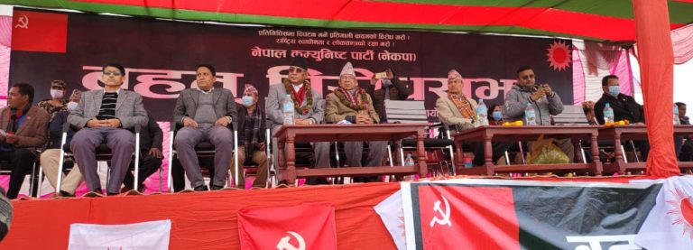 धनगढी, १७ माघ । नेपाल कम्युनिष्ट पार्टी (नेकपा) दाहाल–नेपाल समूहका अध्यक्ष तथा पूर्व प्रधानमन्त्री माधव कुमार नेपालले संसद पूनःस्थापना हुने केपी ओलीको बहिर्गमन हुनुको विकल्प नभएको टिप्पणी गरेका छन् । आज (शनिबार) उक्त समूहले सुदुरपश्चिको धनगढीमा आयोजना गरेको विरोध सभालाई सम्बोधन गर्दै नेता नेपालले यस्तो बताएका हुन् । नेपालले भने, ‘संसद पुनर्स्थापना हुन्छ, केपी ओलीको बहिर्गमन हुन्छ, त्यसबाहेक अर्को विकल्प छैन । केपी ओली अस्ताउँदा सूर्य हुन्, त्यसैले अर्को पार्टी खोले एमाले । त्यो पार्टीको चिन्ह डाँडामा अस्ताउँदो सूर्य छ । त्यही अस्ताउँदै गरेको सूर्य बोकेर ओली विदा हुँदैछन् ।’