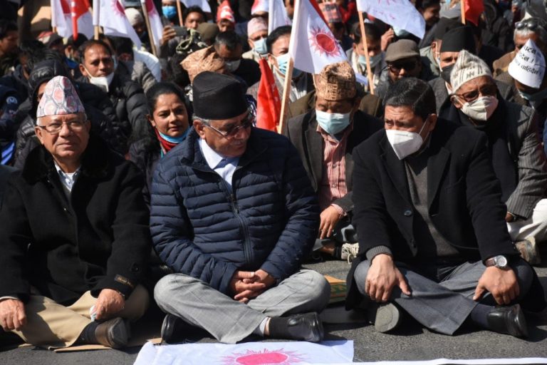 काठमाडौं, १८ माघ । नेपाल कम्युनिष्ट पार्टी (नेकपा) को दाहाल–नेपाल समूहले केन्द्रीय कमिटी बैठक बोलाएको छ । बैठक भोलि माघ १९ गते विहान ११ बजे कार्की ब्यांक्वेटमा बस्ने भएको छ । प्रतिनिधिसभा विघटनविरुद्ध दाहाल–नेपाल समूह संघर्षमा छ । आजमात्रै पनि उक्त समूहले माईतीघरमा धर्ना दिएको थियो । धर्ना कार्यक्रममा अध्यक्षद्धय पुष्पकमल दाहाल र माधव कुमार नेपाल पनि सहभागी थिए । Photo : M. Kalikote