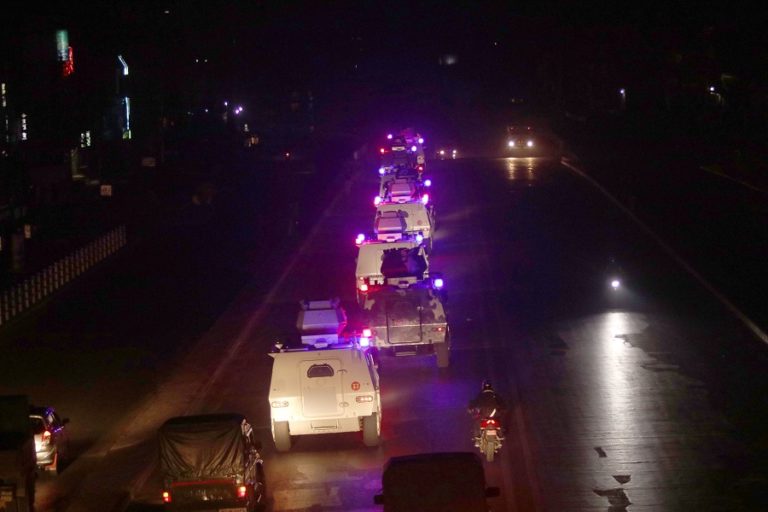 काठमाडौँ, २० माघः नेपाली सेनाबाट बख्तरबन्द गाडी सोमबार राति चक्रपथ परिक्रमा गर्दै ।