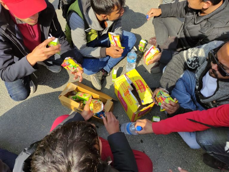 आन्दोलनमा बिहानैदेखि सडकमा उत्रिएकाहरुले खाजाको रुपमा कतै चाउचाउ त कतै खाना नै पकाएर खाएका छन् । तस्विर : मुकुन्द कालिकोटे, रिपोर्टर्स नेपाल डटकम
