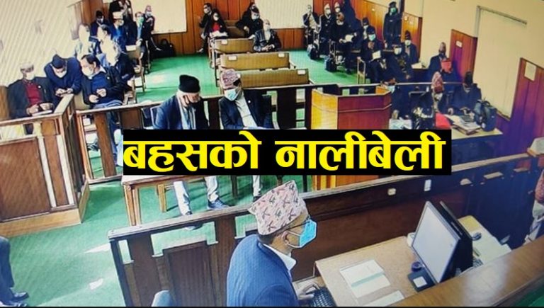 प्रतिनिधिसभा विघटनविरुद्धका मुद्दामा सर्वोच्च अदालतको संवैधानिक इजलासमा नियमित सुनुवाइ भइरहेको छ । प्रतिनिधिसभा विघटनविरुद्ध १३ निवेदन परेका थिए जसमाथि १३ दिन लगाएर निवेदकका कानुन व्यवसायीले बहस गरेका थिए । प्रधानमन्त्री ओलीको सिफारिसमा राष्ट्रपति भण्डारीले पुस ५ गते प्रतिनिधिसभा विघटन गरेकी थिइन् ।