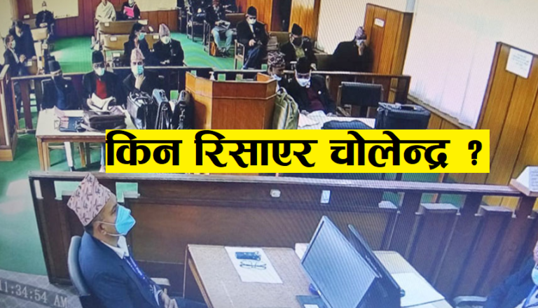 माघ २६, काठमाण्डौ । प्रतिनिधिसभा विघटनविरुद्धको रिटमाथि सर्वोच्च अदालतको संवैधानिक इजलासमा सुनुवाइ जारी छ । प्रधानन्यायाधीश चोलेन्द्र शमशेर राणाले माघ अन्तिमसम्म बहस सक्न आग्रह गरेसँगै इजलासमा अहिले समयमा कडाइ गरिएको छ । प्रधानमन्त्री कार्यालयका तर्फबाट बहस गरिरहेका वकिलहरुलाई सोमबार १५ मिनेटभन्दा बढी समय दिइएन । वकिलहरुले समय लम्ब्याउन खोजे पनि प्रधानन्यायाधीश चोलेन्द्रशमशेर जबराले रोकेका थिए ।