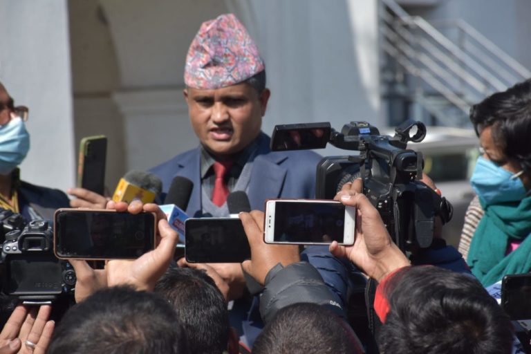 थापाले भने–‘प्रमुख निर्वाचन आयुक्त दिनेश थपलियाले आयोगको तयारीका बारेमा प्रधानमन्त्रीज्यूलाई जानकारी गराउनुभयो । र, प्रधानमन्त्री ओलीले आयोगलाई निर्वाचनको तयारीको कामलाई निरन्तरता दिन सुझाव दिनुभएको छ ।’ थापाले तोकिएको मितिमा निर्वाचन गराउनुको विकल्प नभएको कुरा प्रधानमन्त्री ओलीले आफ्नो धारणा राखेको पनि सुनाए । Photo By: Mukunda Kalikote/ReportersNepal