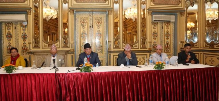 काठमाडौं, २७ माघ । नेपाल कम्युनिष्ट पार्टी (नेकपा) दाहाल–नेपाल समूहले आज अन्तर्राष्ट्रिय सञ्चार माध्यममा आवद्ध सञ्चारकर्मीहरुसँग अन्तरक्रिया गरेको छ । आज काठमाडौंमा अध्यक्षद्वय पुष्पकमल दाहाल प्रचण्ड र माधवकुमार नेपालले अन्तर्राष्ट्रिय सञ्चार माध्यममा आवद्ध सञ्चारकर्मीहरुसँग छलफल गरेका हुन् । छलफलको क्रममा अध्यक्ष दाहालले नेपालमा लोकतन्त्रको हत्या भैरहेको जिकिर गरे । उनले भने,‘नेपालमा लोकतन्त्रको हत्या भइरहेको छ । लोकतन्त्रको पक्षमा हुने सबैको समर्थन हामीलाई चाहियो भनेर औपचारिक अपील गरेका छौं । अलग–अलग भेटेर कुरा गरेका छौं ।’
