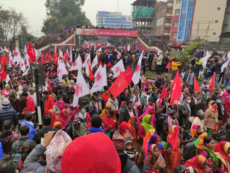 काठमाडौं, २८ माघ । नेपाल कम्युनिष्ट पार्टी (नेकपा) दाहाल–नेपाल पक्षले आज काठमाडौंमा बृहत्त जनसभाको आयोजना गरेको छ । उक्त सभाको लागि काठमाडौंका विभिन्न ठाउँबाट जुलुश आउन सुरु भएका छन् । जुलुशमा शीर्ष नेताहरु नै सहभागी छन् । आज काठमाडौं उपत्यकाको ट्राफिक आवागमन नै प्रभावित बनेको छ । चक्रपथभित्र जुलुसमा सहभागी हुने गाडी भने प्रवेश गर्न पाउनेछन् । सभागृह अगाडी मुख्य सडकमा मञ्च बनेकाले घण्टाघर, पुरानोबसपार्कबाट सिंहदरबार आउने मुलबाटो बन्द गरिएको ट्राफिक प्रहरीले जनाएको छ । यसअघि नेकपा ओली पक्षले गत माघ २३ गते काठमाडौंमा आमसभाको आयोजना गरेको थियो । त्यतिवेला पनि काठमाडौंको ट्राफिक प्रभावित बनेको थियो । तस्विर : मुकुन्द कालिकोटे, रिपोर्टर्स नेपाल डटकम